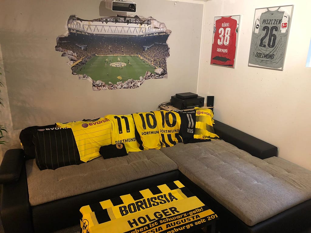 Einige unserer Borussia Augusta Mitglieder haben das Zuhause in einen gelbschwarzen Tempel umgewandelt und bei unserer Fotostory mitgemacht. Echte Liebe hält eben auch einer Pandemie stand. Einige sind in einem gelbschwarzen Bett in das Traumfinale geflogen, andere haben sich gleich das ganze Stadion ins Wohnzimmer geholt.