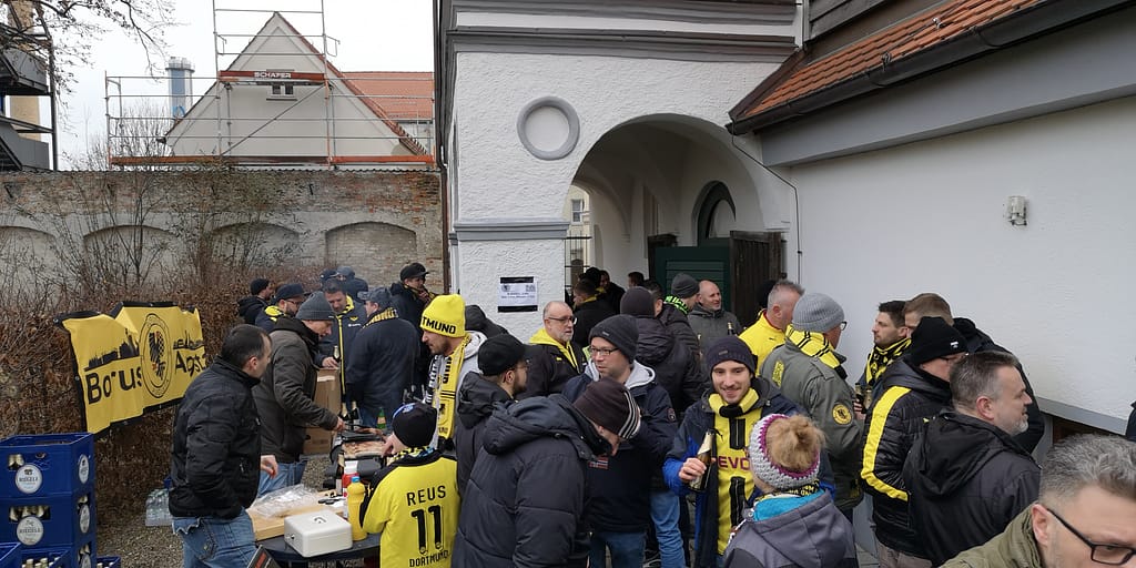 Seit dem Bestehen unseres Fanclubs haben die Mitglieder von Borussia Augusta auf das erste „Heimspiel“ unserer Borussia gewartet. Nun stand das Spiel in Augsburg an. Wir hatten bereits im Vorfeld Kontakt zu „Augsburg Calling“ hergestellt, weshalb Borussia Augusta ein kleines „Get-Together“ für alle BVB-Freunde vor dem Spiel organisierte.