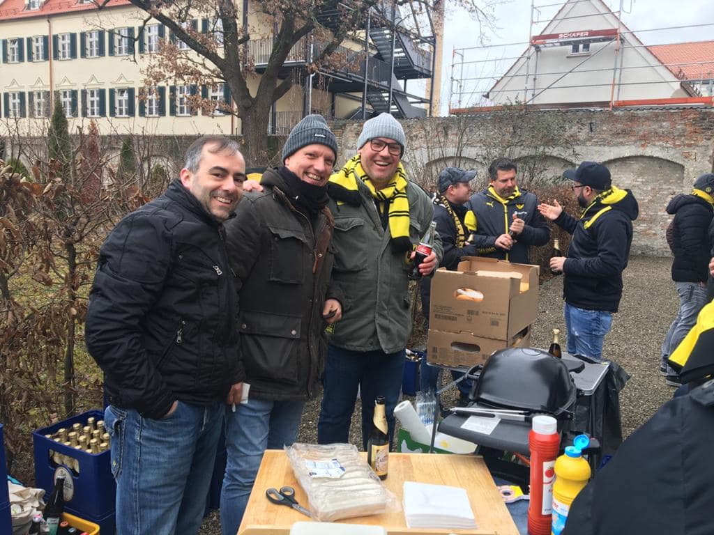 Vor dem Spiel lud Borussia Augusta zum Event „Bratwurst & Bier“ ein. Dabei wurden noch die letzten Vorbereitungen unter den befreundeten Fanclubs, Freunden und Interessenten für das Spiel gegen den FC Augsburg getroffen. Bereits um 11 Uhr schmissen wir den Grill an, somit wurden die ersten Biere geöffnet und Bratwürste verzehrt. Es entwickelte sich ein munteres, schwarz-gelbes Beisammensein in einer gemütlichen Runde. Wir führten gemeinsam ernsthafte Gespräche über Fußball, vor allem über unseren BVB und knüpften neue Bekanntschaften.